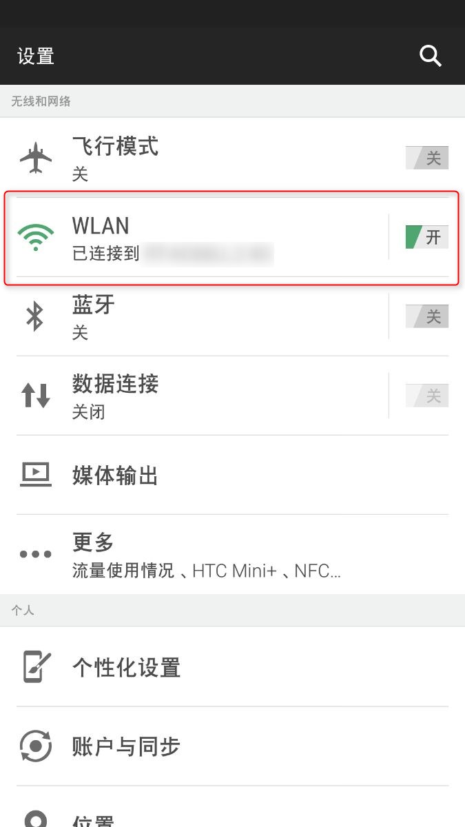 2. 点击 WLAN 选项打开 Wi-Fi 列表